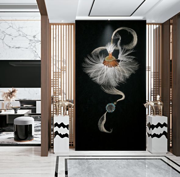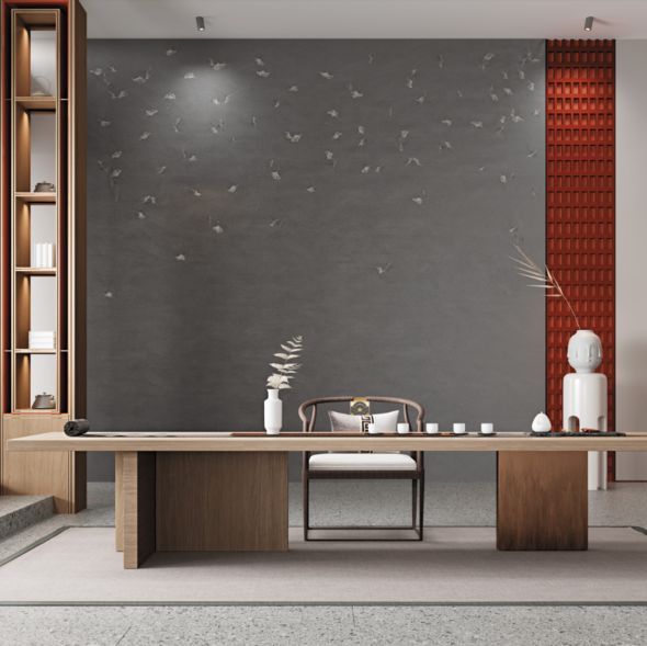 BJ056系列采用仿羊絨工藝,它觸感柔軟,吸濕透氣性強,而且耐臟耐磨程度高。令人驚喜的是,墻布的仿羊絨纖維肌理具有一定密度,能夠有效吸收減少噪音,讓我們和家人安享靜謐居室。 刺繡工藝,傳遞中國古典雅致之美