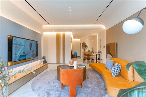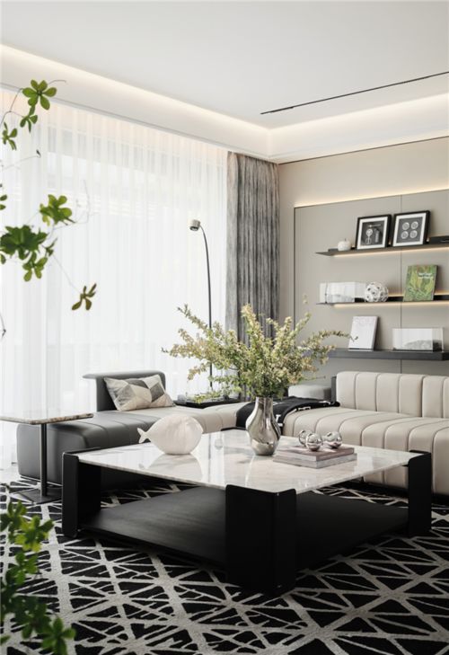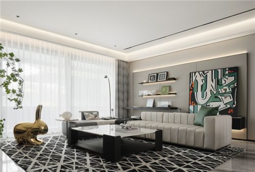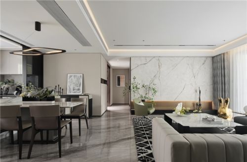 客餐通廳設(shè)計,社交實力派。洋房戶型客廳+餐廳設(shè)計,開闊大氣,盡顯主人會客尺度。打破空間壁壘,延伸了視覺的通透性。