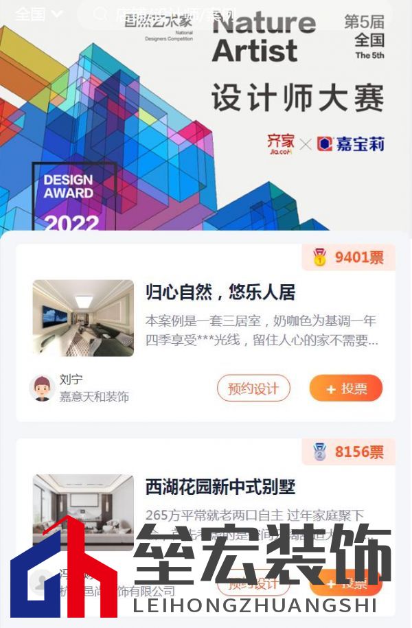 從8月25日啟動作品征集以來,共吸引了數(shù)千名設計師提交參賽作品,目前收到的作品主要為圖文和視頻兩種形式,在參賽作品當中,不少參賽設計師巧妙的將嘉寶莉藝術涂料元素融入到作品的整體風格當中,完美的將家居空間與自然藝術融合,展現(xiàn)出了設計作品的藝術張力。10月21日,第五屆全國設計師大賽將正式進入全國總決賽環(huán)節(jié),屆時各大區(qū)的參賽選手,將圍繞全國設計案例金獎、全國視頻案例金獎兩大獎項展開激烈的角逐。 此次大賽邀請了國內(nèi)高端設計大咖和行業(yè)專家擔任評委,將從多個維度對參賽作品進行評選,同時也為有需要的設計提供指導與幫助,提高行業(yè)設計師面對復雜挑戰(zhàn)的綜合能力,并為家裝行業(yè)發(fā)掘設計新星。 什么,裝修還用自己的錢?!齊家裝修分期,超低年利率3.55%起,最高可貸100萬。立即申請享受優(yōu)惠 |