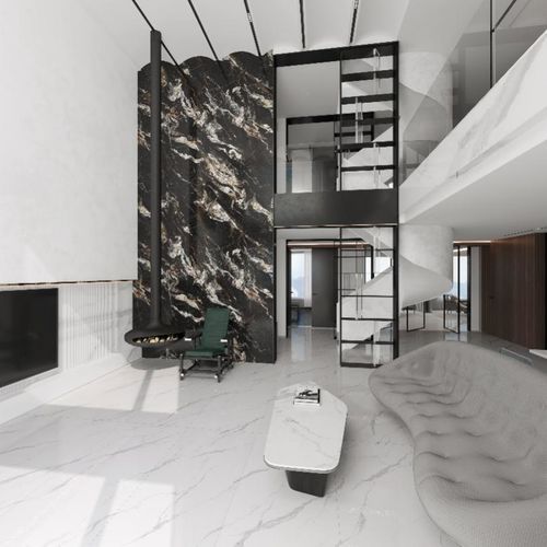 應用產(chǎn)品:奧爾特灰、江山白、金色年華 侘寂風的流行讓曲線有了更多的發(fā)展空間。侘寂風沒有復雜的造型裝飾,而是利用曲面和曲線在室內(nèi)打造出一種分散又統(tǒng)一的差異感,優(yōu)雅的弧線讓空間看上去更加柔和純粹?!驹萍啺谆摇砍洚斂蛷d背景墻,質(zhì)感柔和、調(diào)性溫暖的云紗紋理和質(zhì)感,有著強烈的回歸自然之感,散發(fā)著質(zhì)樸、自然的優(yōu)雅美感。