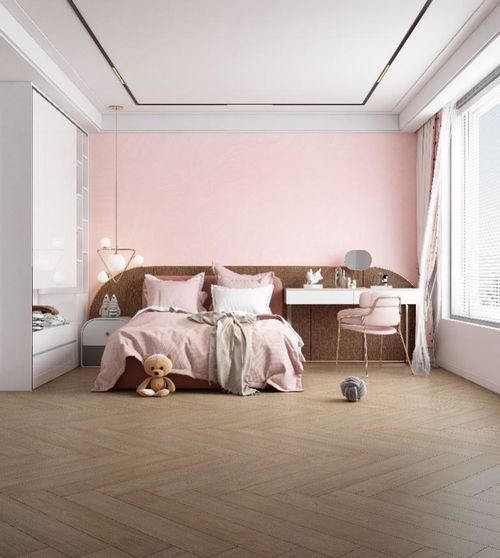 應用產(chǎn)品:櫻花粉、海南黃花梨-淺卡其 鋪貼成人字形的瓷磚、幾何設計和樸實的中性色調(diào),搭配柔和的紡織品、清新的墻紙,打造出了俏皮但不失精致的室內(nèi)風格。