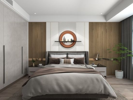臥室 臥室的設(shè)計(jì)同樣秉承輕奢風(fēng)的理念。有著非常個性化設(shè)計(jì),特別是奧華·月牙白格柵板和搭配的裝飾畫,最后呈現(xiàn)出的奢華效果,既有視覺享受,又能讓人享受生活,身心都能得到滿足才是最重要的。