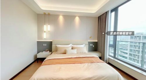 這里選用的是成為市場新寵的愛漫時睡眠窗簾,其以一級的遮光標(biāo)準(zhǔn),特有物理結(jié)構(gòu)的隔音降噪,將生活的私密與高級拿捏得恰到好處。并且在有助睡眠的灰色系加持下,安睡作用加倍,加上3倍密度的隔熱、12倍的防紫外線,在隱秘的私人空間里形成打開窗簾看世界,關(guān)上窗簾聽自己的獨到視感,沉浸體驗多重愜意與舒適。