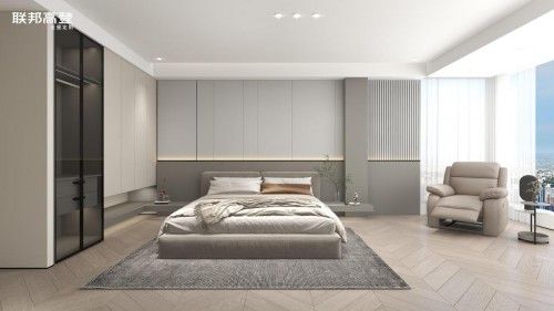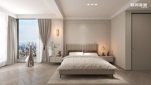 主臥遵循極簡(jiǎn)自然的舒適氛圍,采取適當(dāng)?shù)牧舭?,?yáng)光從落地窗揮灑而來(lái),明朗通透又舒緩愜意。