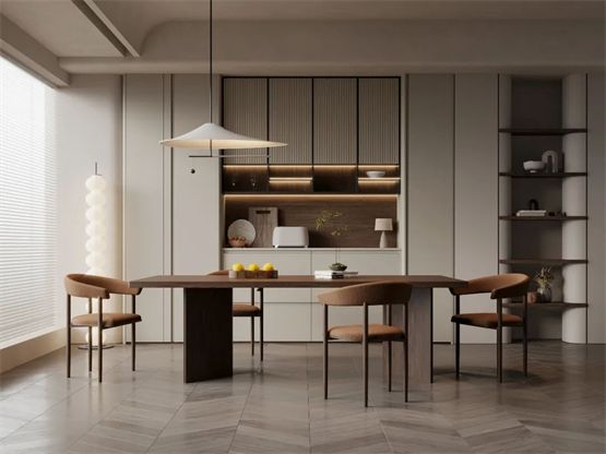 據(jù)悉本次定制展上,筑美家居將帶來5款春季整家新品,包含侘寂、日式、奶油、極簡、意式等不同風格。 清簡侘寂風——霧隱禪蹤