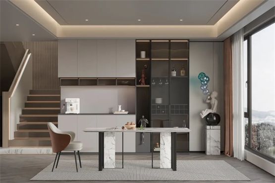 ·金屬壓紋鐵灰、雅白同紋異色碰撞,淺卡其居中調(diào)和,時尚又不失典雅。 ·干凈利落的直線搭配柔和起伏的格柵,理性與溫柔并存,呈現(xiàn)藝術格調(diào)。 ·PET膚感門板,如新生兒肌膚般滑潤,帶來治愈心靈的精神慰藉。 ·藝術布局,開放又帶幾分內(nèi)斂,低調(diào)又含些許鋒芒,尺度恰到好處。 意式簡約風——米蘭格調(diào)