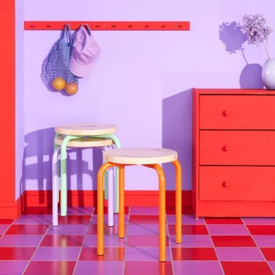 Nytillverkad 霓特浮德 系列 印花產(chǎn)品 除此之外,Nytillverkad 霓特浮德 系列還包括DOMSTEN 多姆斯坦 凳子,這張凳子擁有光滑的松木凳面與現(xiàn)代時尚的彩色金屬支腿,其原型是由Karin Mobring設(shè)計的JERRY 凳子;此外,還有一款BONDSKÄRET 邦克拉特 衣帽架,其原型是由設(shè)計師Rutger Andersson打造的SMED 衣帽架,現(xiàn)以醒目大膽的風格煥新演繹。