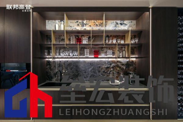 西式簡(jiǎn)餐區(qū)從功能與美學(xué)搭配出發(fā),櫥柜采用聯(lián)邦高登全新花色【隱冬】精質(zhì)展現(xiàn),裝飾陳列、備餐一步到位;實(shí)現(xiàn)了多元材質(zhì)的共生并融,原生木皮紋理、玻璃、金屬、亞克力、石材等在柔和燈光渲染下呈現(xiàn)奇妙質(zhì)感。