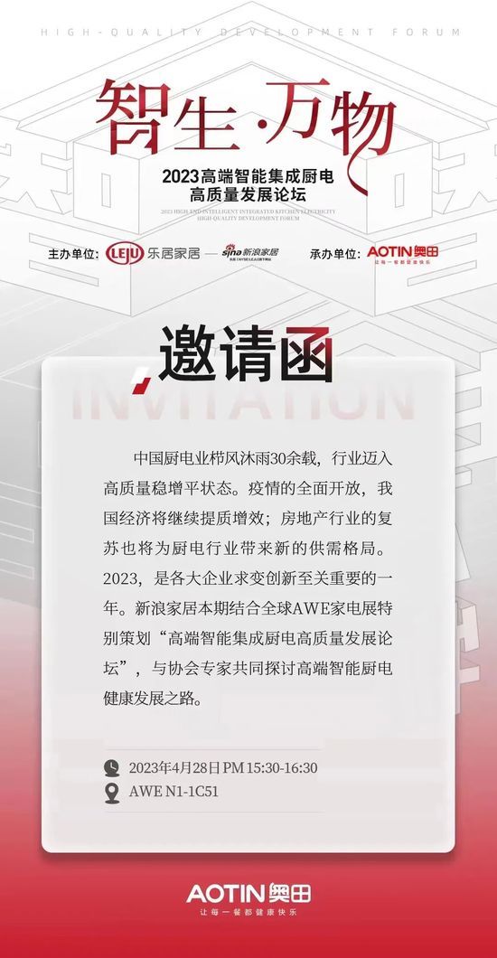 此次展會(huì)奧田還為大家?guī)砹司驶?dòng)活動(dòng),不間斷現(xiàn)場美食烹飪體驗(yàn);現(xiàn)場打卡分享白色集成灶,可獲得精美禮品更有機(jī)會(huì)贏千元大家,名額有限速速來打卡;4月28日下午3:30,聯(lián)合新浪家居,針對全球AWE家電展特別策劃“高端智能集成廚電高質(zhì)量發(fā)展論壇”, 奧田N1-1C51恭候大家蒞臨~ 責(zé)任編輯:songyuying |