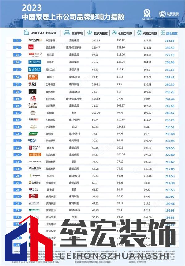 | 5月10日,在第七個中國品牌日活動期間,中華商標協(xié)會品牌影響力專委會、世研指數(shù)聯(lián)合發(fā)布了《2023中國家居品牌影響力指數(shù)報告》,報告公布了「2023中國家居上市公司品牌影響力指數(shù)榜單」。報告指出,美好生活離不開品質家居,家居品牌的發(fā)展與傳播利于消費者公開透明地獲取消費信息,簡化購買決策過程。報告從多元角度對家居領域的標桿企業(yè)、行業(yè)板塊、發(fā)展趨勢進行數(shù)據觀察與分析,公布了家居上市公司品牌影響力指數(shù),以及家居品類、家居消費品、家居空間三個不同視角的互聯(lián)網成交力指數(shù)。 中華商標協(xié)會會長馬夫表示,品牌是生產者和消費者共同的追求,是供給側和需求側升級的方向,是高質量發(fā)展的重要象征。品牌影響力決定著一個國家在全球產業(yè)價值鏈中的地位。中華商標協(xié)會品牌影響力專委會推動《中國品牌影響力指數(shù)研究計劃》實施的一年多來,逐步探索出一套以影響力指數(shù)方式呈現(xiàn)的品牌評價體系,通過面向社會公布各消費領域的指數(shù)研究報告,不斷激發(fā)品牌的創(chuàng)新力量,滿足中國消費者高品質新生活的追求,為品牌進入國際市場賦能。 「2023中國家居上市公司品牌影響力指數(shù)」是以中國家居領域的上市公司為品牌主體,評估其在中國消費者群體中的心智認知、價值認同的綜合指數(shù)模型,由競爭力指數(shù)、心智力指數(shù)和傳播力指數(shù)構成。報告中披露了30家標桿品牌,包括:歐派家居、顧家家居、索菲亞、美凱龍、居然之家、喜臨門、公牛集團、慕思股份、東方雨虹、志邦家居、金螳螂、東鵬控股、水星家紡、三棵樹、歐普照明、好萊客、尚品宅配、箭牌家居、我樂家居、兔寶寶、金牌廚柜、富安娜、曲美家居、美克家居、蒙娜麗莎、惠達衛(wèi)浴、北新建材、夢潔股份、大亞圣象、東易日盛。 上市公司的經營業(yè)務中涉及廣義家居概念的企業(yè)眾多,且主營業(yè)務在不斷擴張、跨界、整合中快速變化,報告對數(shù)百家業(yè)務涉及定制家居、家具、賣場、建材、家紡、衛(wèi)浴、電氣照明等業(yè)務的公司進行數(shù)據監(jiān)測。家電領域因規(guī)模體量大且相對獨立,在本次指數(shù)評估中未一并納入,預計在未來的系列報告中進行專項研究。