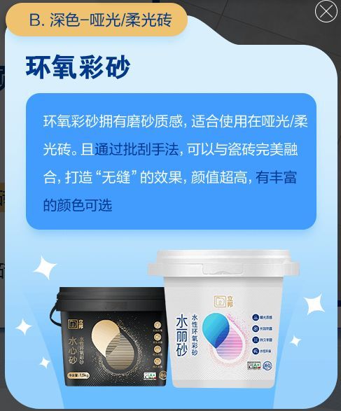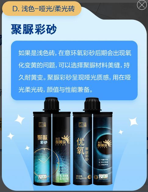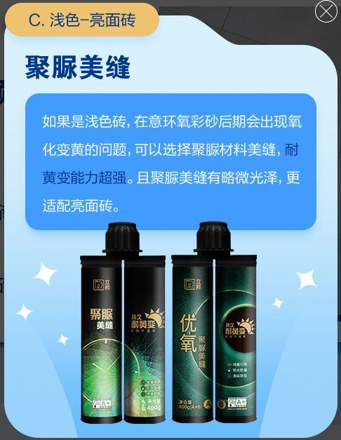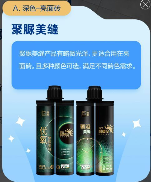 美縫選購記住要點 總的來說,光照場景多的推薦聚脲材質美縫,對顏值有需求的則選環(huán)氧材質美縫。 這里推薦pick立邦的美縫產(chǎn)品,實力“抗打”,口碑“不塌房”。 怎么樣,美縫選擇技巧,你get到了么? |