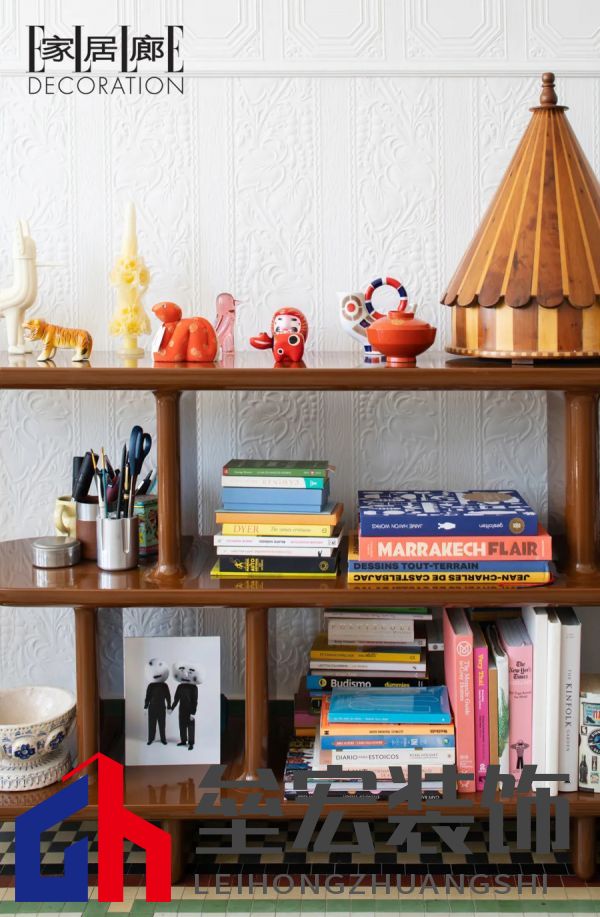 定制木架上都是主人的私藏。中間的藍色大開本《Jaime?Hayón?Works》由Gestalten出版。