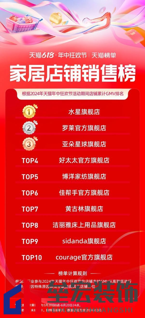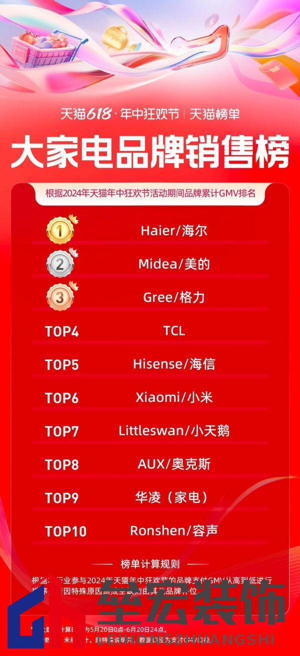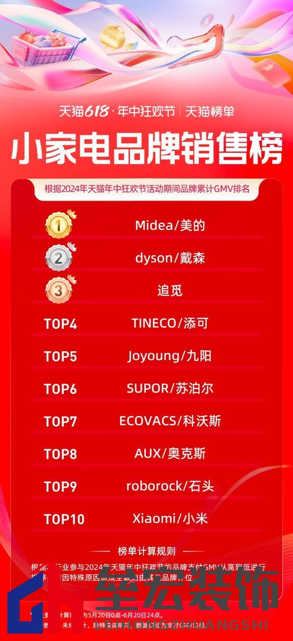 | 日前,天貓618全周期(5.20-6.20)品牌成交排行榜發(fā)布,家享生活、3C數(shù)碼、玩具潮玩、健康等行業(yè)的領(lǐng)跑品牌、商家出爐。 今年天貓618取消預(yù)售,現(xiàn)貨開賣,截至6月18日24點(diǎn),365個(gè)品牌在天貓618成交破億,超36000個(gè)品牌成交翻倍,品牌在天貓618實(shí)現(xiàn)上半年最大的生意爆發(fā)。 家電家裝家居迎來品牌爆發(fā)式增長,開賣首日就有119個(gè)單品成交過千萬,截止6月20日,1868個(gè)品牌同比去年成交翻倍。 家電家裝品牌表現(xiàn)方面,源氏木語、林氏家居、九牧包攬家裝品牌榜前三;水星家紡、羅萊家紡、亞朵星球為家居品牌GMV排名前三選手;大家電品牌方面,海爾、美的、格力三大巨頭依次位列排名前三;美的、戴森、追覓登上小家電品牌銷售榜前三名。 據(jù)悉,今年天貓618,淘寶天貓堅(jiān)持“用戶為先”,致力“品牌增長”,升級88VIP權(quán)益、打通淘寶天貓滿減;并作出史上最大力度投入,加投150億的紅包、品類券。品牌的翻倍增長是“用戶為先”的自然結(jié)果。 以下為泛家居行業(yè),天貓618全周期(5.20-6.20)品牌成交排行榜: