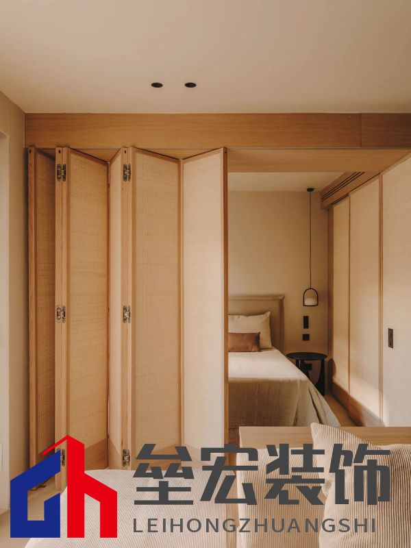 主臥室通過滑動折疊門與起居區(qū)隔開,確保隱私的同時(shí)保留開放感。隱藏在書架后的門通向浴室和第二間臥室,為空間增添了巧妙的層次感。