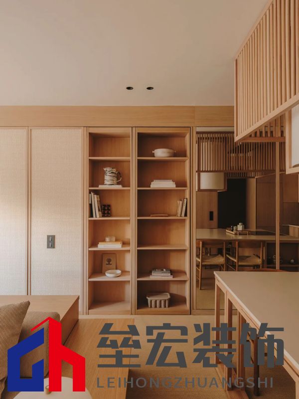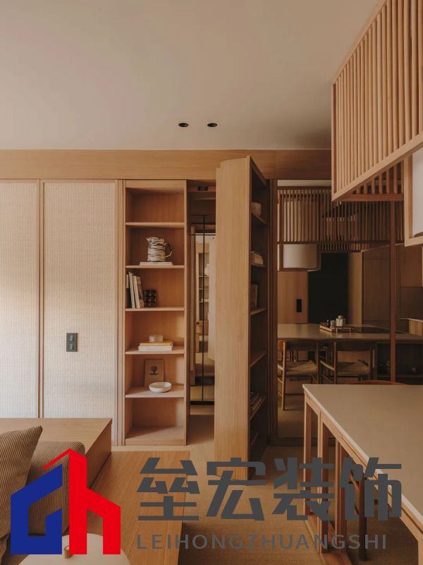 在餐廳旁邊,設(shè)計(jì)師巧妙地加入了一個(gè)隱藏式儲物間,既保持了空間的簡潔整潔,又提供了實(shí)用的存儲功能。儲物間的門與置物架結(jié)合,使其在視覺上融入整體設(shè)計(jì),幾乎不被察覺。