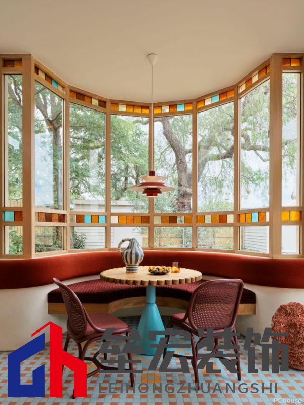 曲線美的餐廳壁龕與房屋窗戶的幾何設(shè)計相呼應(yīng),成為整個家庭生活區(qū)域的視覺中心。