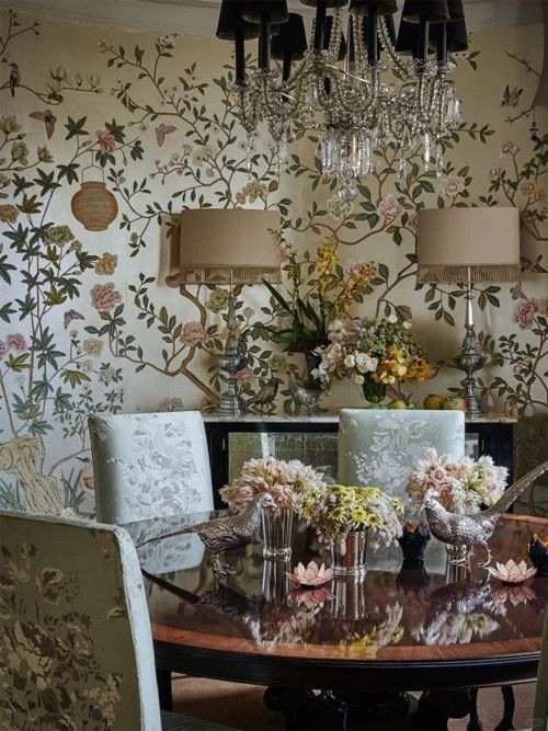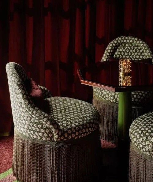 ?Martin?Brudnizki 02° 戲劇的沖突 那些看似不合理的“碰撞” 花卉、幾何、動物紋、復古印花等不同圖案混搭,無論是條紋墻紙搭配波西米亞地毯,或格紋沙發(fā)與熱帶植物壁畫結合。 天鵝絨、絲綢、金屬、藤編、大理石等不同材質的碰撞,增強空間質感,絲絨沙發(fā)搭配黃銅茶幾,或木質書架與鏡面裝飾結合,材質間的沖突感。很多時候還會看到繁復的壁紙、壁畫或裝飾線條(如護墻板、石膏線)打造“視覺轟炸”效果。 ?