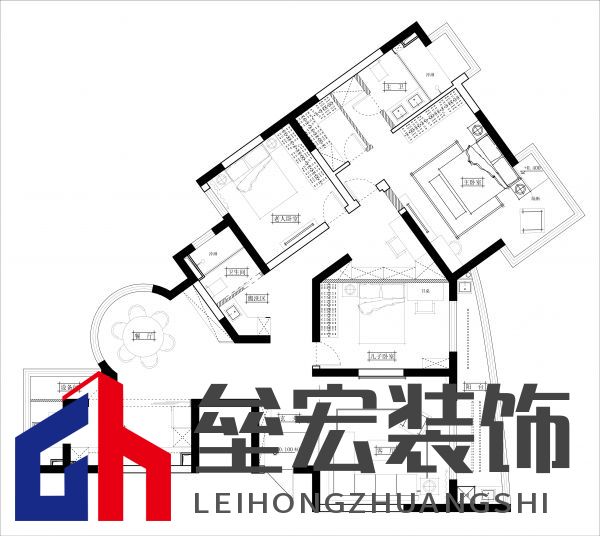 ??然而,家家有本難念的經(jīng),裝修也是如此。在改造前,張女士家的房型是比較少見的不規(guī)則戶型,因此改造的難點(diǎn)在于戶型的結(jié)構(gòu)調(diào)整和廚房功能區(qū)的劃分。首先,該戶型有三個(gè)陽臺,但是由于限制,全部使用的利用價(jià)值不高。其次,廚房對于整個(gè)戶型的面積和居住人口偏小,但是餐廳區(qū)域有非常漂亮的圓弧形落地玻璃窗。再次,走道過于狹長,主臥室床背景墻面偏短,與如此大面積的戶型相比缺乏大氣。  改造前戶型圖
