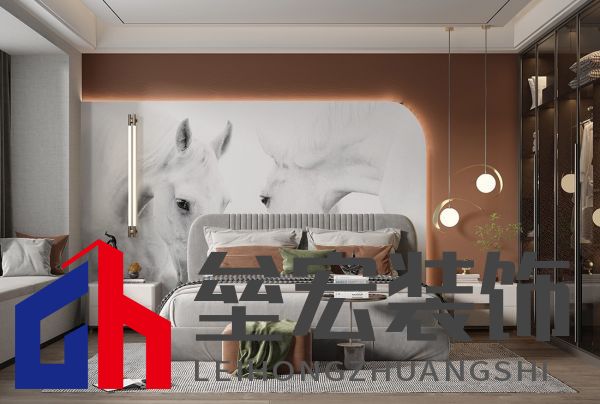 ??或如馳騁的駿馬,整體色調(diào)以白色為主,畫面中兩匹白色的駿馬,象征純潔和高貴,駿馬有乘風破浪,縱橫馳騁的美好寓意,巧妙的明暗色彩運用賦予空間超凡脫俗的藝術(shù)格調(diào)。