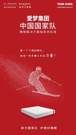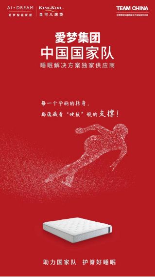 ??金可兒品牌所屬愛夢集團(tuán),是TEAM CHINA中國國家隊睡眠解決方案供應(yīng)商。金可兒護(hù)脊好睡眠,助力中國國家隊出征!與此同時,金可兒提醒您:賽事很精彩,觀賽注意勞逸結(jié)合,享受歡聚團(tuán)圓美好時光。