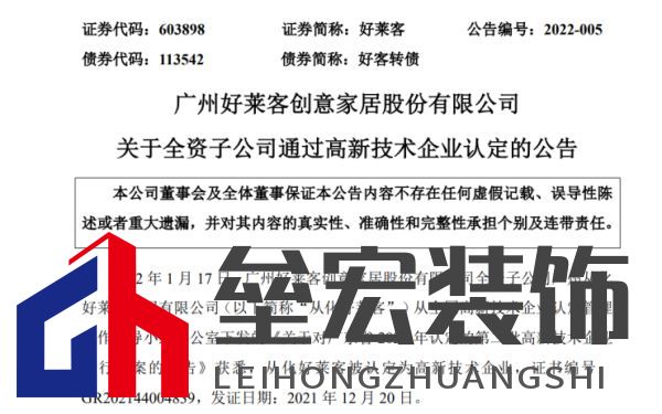 《高新技術(shù)企業(yè)證書》基本情況: 1、證書編號(hào)::GR202133004744 2、發(fā)證日期:2021年12月16日 3、有效期:3年 對(duì)公司的影響: 根據(jù)《中華人民共和國(guó)企業(yè)所得稅法》及國(guó)家對(duì)高新技術(shù)企業(yè)的相關(guān)規(guī)定,花木匠公司自通過高新技術(shù)企業(yè)認(rèn)定起連續(xù)三年(2021年至2023年)可享受國(guó)家關(guān)于高新技術(shù)企業(yè)的稅收優(yōu)惠政策,即按15%的稅率繳納企業(yè)所得稅。 五:好萊客:全資子公司廣州從化好萊客家居有限公司