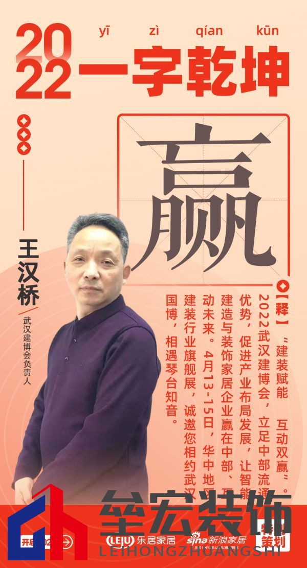 “樂(lè)業(yè)安居”是中國(guó)人最為共情之處,湖北家居人深諳漢字對(duì)于國(guó)人、對(duì)于企業(yè)的非凡意義,武漢新浪家居戰(zhàn)略合作伙伴、家居行業(yè)優(yōu)秀代表:武漢建博會(huì)負(fù)責(zé)人王漢橋,以「贏」字打開(kāi)新年儀式感。 “建裝賦能,互動(dòng)雙贏”。2022武漢建博會(huì),立足中部流通優(yōu)勢(shì),促進(jìn)產(chǎn)業(yè)布局發(fā)展,讓智能建造與裝飾家居企業(yè)贏在中部、互動(dòng)未來(lái)。4月13-15日,華中地區(qū)建裝行業(yè)旗艦展,誠(chéng)邀您相約武漢國(guó)博,相遇琴臺(tái)知音?!岗A」字完美表達(dá)了2022年武漢建博會(huì)的愿景。 虎歲賁華,說(shuō)好中國(guó)字,鏈接美好生活! |