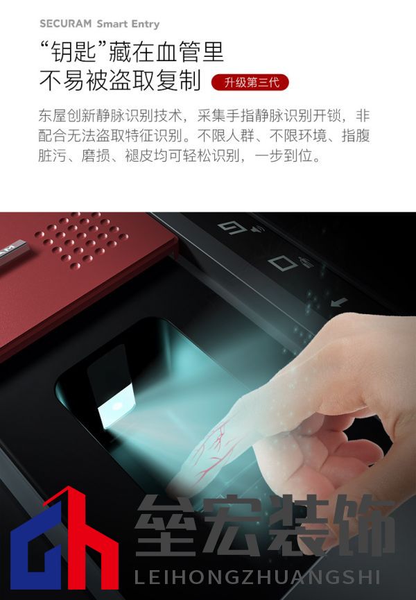 一些門(mén)鎖專家認(rèn)為,“智能識(shí)別鎖在算法技術(shù)上,確實(shí)存在很大的提升空間。更加智能的算法,可以顯著降低門(mén)鎖產(chǎn)品‘誤判’的可能性,將安全風(fēng)險(xiǎn)盡量減少至最低限度?!?/p> 在這樣的市場(chǎng)環(huán)境下,靜脈識(shí)別鎖成功被研制而出,并且憑借著高效、安全的解鎖模式,迅速在智能門(mén)鎖領(lǐng)域“稱王稱霸”,取得了無(wú)數(shù)消費(fèi)者的由衷青睞。 從生物學(xué)的層面上來(lái)看,靜脈識(shí)別的方式要更加穩(wěn)妥、更加安全一些,因?yàn)殪o脈的生物識(shí)別特征在體內(nèi),處于人體靜脈血管當(dāng)中,幾乎不會(huì)受外界任何因素的影響,具有穩(wěn)定性、唯一性、更加安全的特征。也就是說(shuō),靜脈識(shí)別不會(huì)出現(xiàn)磨損過(guò)度的狀況,深埋在人體靜脈血管里,是天然的“血脈鑰匙”。