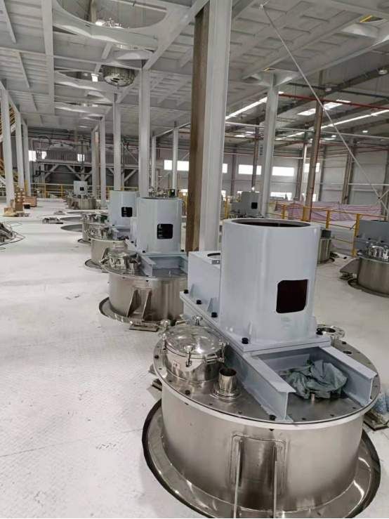 ??(產(chǎn)線三維模型圖) ??(3D model drawing of production line) ??系統(tǒng)特點(diǎn):System characteristics ??1、粉體投料系統(tǒng)無(wú)塵化、自動(dòng)化,自帶過濾濾芯及除塵系統(tǒng),粉體補(bǔ)料過程中無(wú)粉塵飛揚(yáng);粉體根據(jù)配方需求全自動(dòng)配料;極大的降低人工成本和改善工作環(huán)境; ??The powder feeding system is dust-free and automatic, with its own filter element and dust removal system, and there is no dust flying in the process of powder feeding. The powder is fed automatically according to the formula and greatly reducing labor costs and improving the working environment. ??2、根據(jù)高粘度的物料特性,特殊設(shè)計(jì)混合攪拌結(jié)構(gòu),超高效混合,生產(chǎn)罐及調(diào)色罐真空設(shè)計(jì)壓力為100pa; ??According to the characteristics of high viscosity materials, the mixing structure is specially designed for ultra efficient mixing. The vacuum design pressure of production tank and color mixing tank is 100Pa. ??3、B組分生產(chǎn)罐采用專色專罐,免清洗,無(wú)液廢、固廢; ??The production tank of component B uses different tanks for each color, which is free of cleaning and liquid & solid waste. ??4、高效智能,自動(dòng)化程度高,具備一鍵啟動(dòng)條件;液體配料及物料轉(zhuǎn)移根據(jù)配方需求全自動(dòng)運(yùn)行; ??High efficiency, high degree of automation, with one-key start condition.Liquid batching and material conveying are fully automatic operated according to formula. ??5、成品采用恒壓系統(tǒng)泵送至灌裝機(jī),這個(gè)輸送過程全部在密閉的管道中進(jìn)行,與全自動(dòng)灌裝機(jī)聯(lián)動(dòng)。 ??The finished product is pumped to the filling machine by a constant pressure system. This conveying process is all carried out in a closed pipeline, which is linked with the automatic filling machine. ??目前項(xiàng)目正在安裝進(jìn)行中 ??At present, the project is under installation