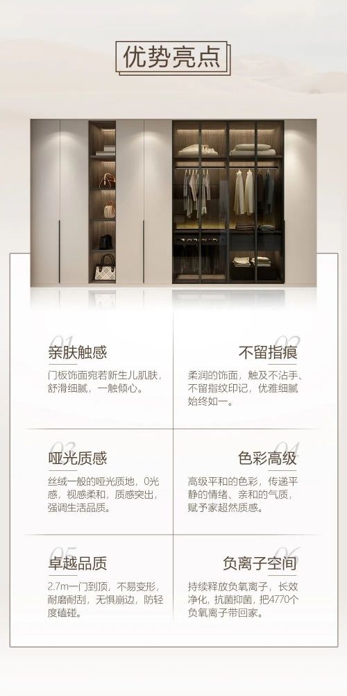 備注: “負(fù)離子空間”特性依據(jù)國(guó)家建筑材料測(cè)試中心檢測(cè)結(jié)果所得,在愛(ài)閣工房全屋定制安裝柜體內(nèi)檢測(cè)空氣負(fù)離子濃度≥3000 ions/cm3;實(shí)際使用會(huì)因環(huán)境變化而有所不同,以實(shí)際為準(zhǔn)。 |