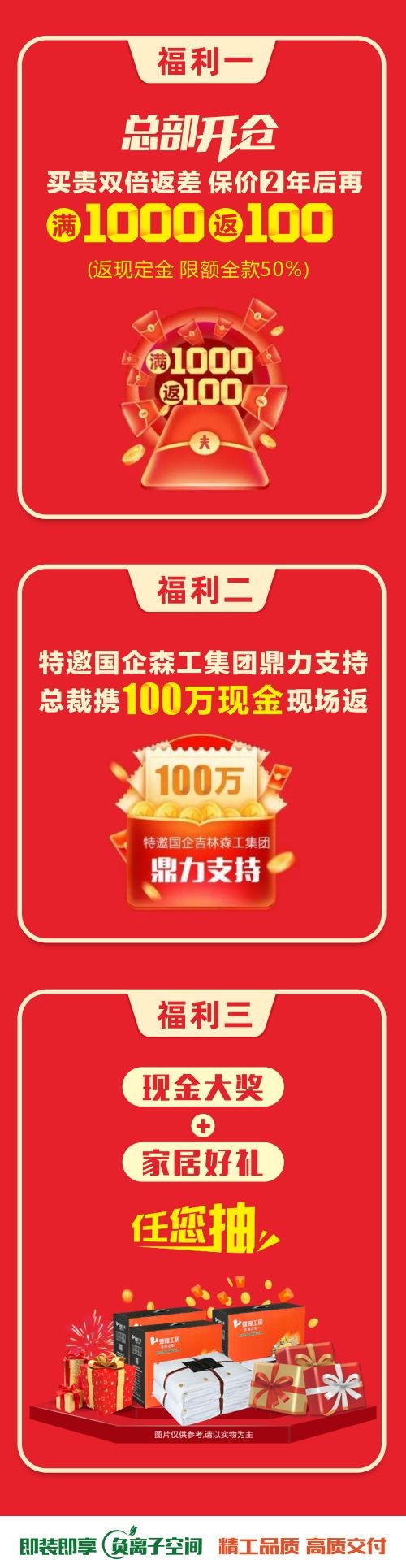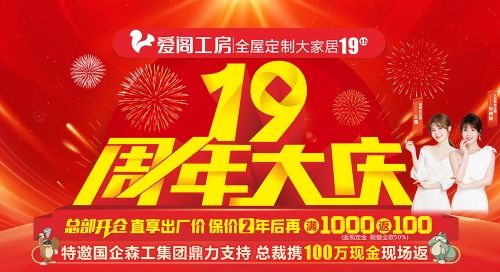 本月盛大啟動(dòng)19周年大慶,總部開倉直享出廠價(jià),保價(jià)2年后再滿1000返100,特邀國企吉林森工集團(tuán)鼎力支持,總裁攜100萬現(xiàn)金現(xiàn)場返,返現(xiàn)活動(dòng)正在如火如荼進(jìn)行,返現(xiàn)余額分秒遞減,返完即止。多重福利優(yōu)惠超值襲來,全屋定制就選愛閣工房!