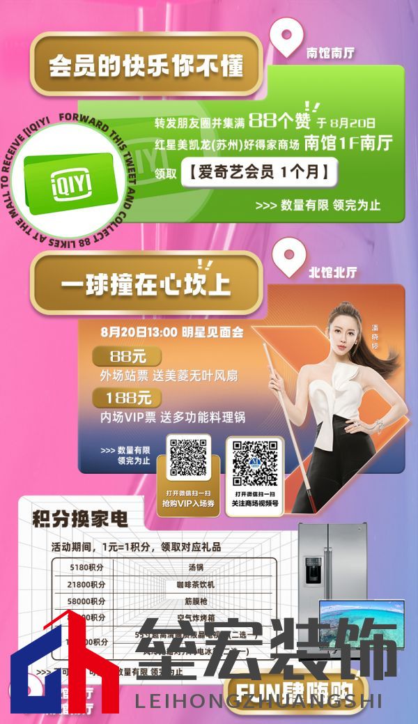 ??8月20日,這位世界冠軍&美好生活體驗官 ??即將來到紅星美凱龍(蘇州)好得家商場! ??天后駕到,助力818FUN肆嗨購節(jié) ??好禮自然少不了 ??這里有一份最全嗨購攻略,快來查收! ??01 ??集贊送會員&明星見面會