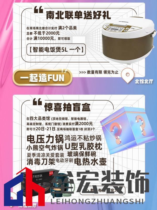 ??活動期間在南北樓消費滿2個品類且都不低于2000元,合計滿10000元,即可領取智能電飯煲一個,先到先得;在四大品類館消費滿2000元即可于20日-21日至商場領取盲盒,電壓力鍋、空氣炸鍋、電動牙刷......開出驚喜抽出樂趣! ??03 ??大咖分享&項目發(fā)布