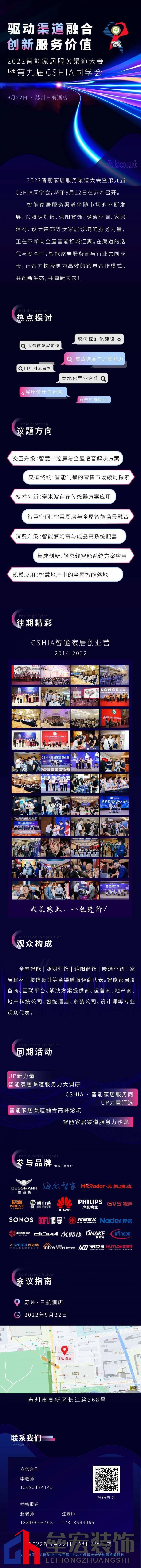 ??長(zhǎng)沙站創(chuàng)新產(chǎn)品展示現(xiàn)場(chǎng) ??精彩預(yù)告 ??2022年9月22日,“2022智能家居服務(wù)渠道大會(huì)暨第九屆CSHIA同學(xué)會(huì)”即將在蘇州舉行。本屆大會(huì)以驅(qū)動(dòng)渠道融合?創(chuàng)新服務(wù)價(jià)值為主題,全面聚焦全屋智能、照明燈飾、遮陽(yáng)窗飾、暖通空調(diào)、家居建材、裝飾設(shè)計(jì)等當(dāng)下智能家居行業(yè)最為關(guān)注的核心方向,并圍繞服務(wù)商發(fā)展定位、服務(wù)標(biāo)準(zhǔn)化建設(shè)、集成選品與方案能力、門店引流獲客、本地化異業(yè)合作、展廳設(shè)計(jì)與運(yùn)營(yíng)、交付與售后等議題展開探討。 ??歡迎大家報(bào)名參與!
