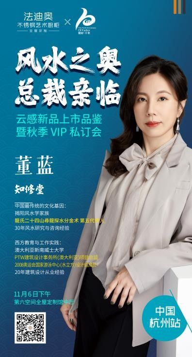 ??11月6日,法迪奧“解密家居風(fēng)水哲學(xué)”巡講沙龍·杭州站,將在杭州第六空間定制館法迪奧旗艦店展廳盛大開(kāi)啟。 ??活動(dòng)特別邀請(qǐng)風(fēng)水大師董藍(lán)老師親臨現(xiàn)場(chǎng)。 ??◎ 分享家居禁忌利好 ??◎ 解析私宅風(fēng)水、家居財(cái)位 ??◎ 現(xiàn)場(chǎng)答疑解惑 ??◎ 為有更高需求的嘉賓提供家居風(fēng)水定制方案