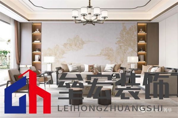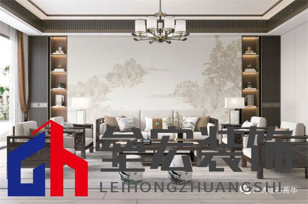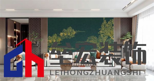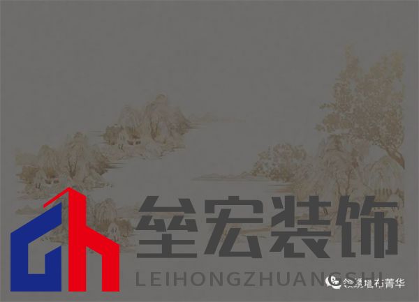 墻面上流暢的寫意山水畫 反映了中式古典風(fēng)采 筆墨交融,構(gòu)建詩情畫意氛圍 兩岸青山 中灰