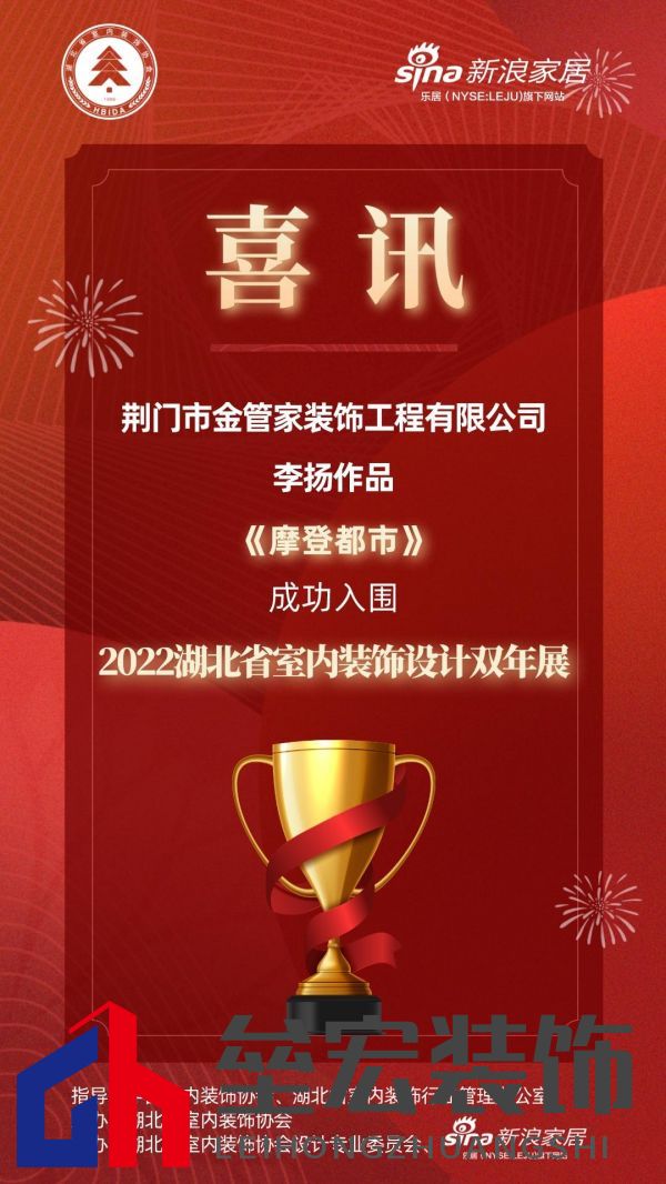 | 綠色設(shè)計(jì),大美荊楚,由中國(guó)室內(nèi)裝飾協(xié)會(huì)、湖北省室內(nèi)裝飾行業(yè)管理辦公室的指導(dǎo),湖北省室內(nèi)裝飾協(xié)會(huì)主辦的2022湖北室內(nèi)裝飾設(shè)計(jì)雙年展,在室內(nèi)裝飾設(shè)計(jì)行業(yè)打造了一場(chǎng)全省范圍的設(shè)計(jì)盛會(huì),首輪評(píng)選百余套作品,70余套優(yōu)秀作品成功入圍。 在智能化、人文化、健康舒適化的時(shí)代趨勢(shì)下,雙年展的舉辦,以新時(shí)代、新理念、新創(chuàng)意,提升室內(nèi)裝飾設(shè)計(jì)水平,為設(shè)計(jì)師進(jìn)行品牌賦能,弘揚(yáng)荊楚設(shè)計(jì)精神與風(fēng)貌。針對(duì)這項(xiàng)有權(quán)威性、有知名度的專業(yè)賽事,武漢各大裝飾公司及設(shè)計(jì)工作室積極響應(yīng),因?yàn)閰⒓与p年展對(duì)設(shè)計(jì)師開拓視野、加強(qiáng)行業(yè)交流、提升專業(yè)水平具有重要意義。 雙年展專家組評(píng)委秉承公正公平、優(yōu)中選優(yōu)的原則,經(jīng)過層層篩選,初評(píng)結(jié)果現(xiàn)已出爐。 設(shè)計(jì)滋養(yǎng)生活,生活反哺設(shè)計(jì),優(yōu)秀的作品,總是離不開對(duì)藝術(shù)矢志不移的熱情與探索,以及對(duì)美與愛的深度感知,雙年展入圍作品均對(duì)此進(jìn)行了完美的詮釋。 荊門市金管家裝飾工程有限公司設(shè)計(jì)師李揚(yáng)原創(chuàng)作品《摩登都市》,成功入圍2022湖北省室內(nèi)裝飾設(shè)計(jì)雙年展,以獨(dú)特的設(shè)計(jì)風(fēng)格,和優(yōu)秀的設(shè)計(jì)能力,展示設(shè)計(jì)理念和創(chuàng)意。