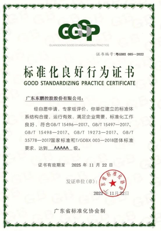 | ??11月22日,廣東省標(biāo)準(zhǔn)化協(xié)會(huì)組織專家組對(duì)廣東東鵬控股股份有限公司的企業(yè)標(biāo)準(zhǔn)化工作進(jìn)行評(píng)價(jià)確認(rèn),依據(jù)評(píng)價(jià)準(zhǔn)則最終評(píng)為“標(biāo)準(zhǔn)化良好行為”AAAAA級(jí)企業(yè)。 ??企業(yè)標(biāo)準(zhǔn)化良好行為是指企業(yè)依據(jù)《企業(yè)標(biāo)準(zhǔn)體系》系列國(guó)家標(biāo)準(zhǔn)(GB/T 15496—2017、GB/T 15497—2017、GB/T 15498—2017、GB/T 19273—2017、GB/T 35778—2017)和廣東省標(biāo)準(zhǔn)化協(xié)會(huì)團(tuán)體標(biāo)準(zhǔn)T/GDBX 003—2018等標(biāo)準(zhǔn)要求,開展企業(yè)標(biāo)準(zhǔn)化工作,建立全新的企業(yè)標(biāo)準(zhǔn)體系并有效運(yùn)行,保證企業(yè)各項(xiàng)活動(dòng)有序開展并取得良好經(jīng)濟(jì)和社會(huì)效益。