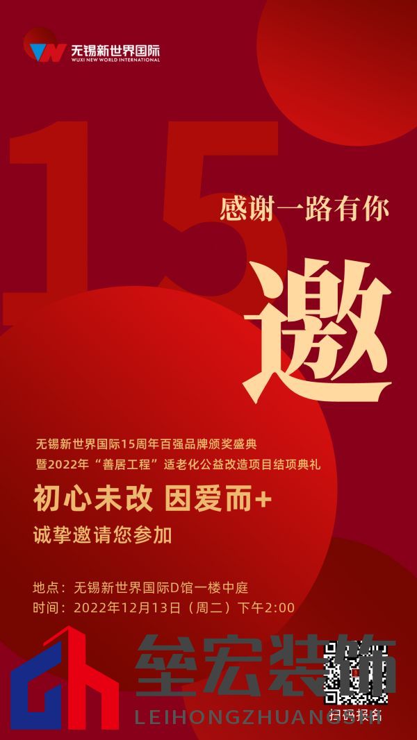 【活動預(yù)告】值此年終之際,為表彰和鼓勵先進(jìn),提高市場活力!12月13日下午2:00,無錫新世界國際15周年百強(qiáng)品牌頒獎盛典暨2022年“善居工程”&“頤居江溪”適老化公益改造項(xiàng)目結(jié)項(xiàng)典禮將在無錫新世界國際家居建材城二期·精品建材館一樓舉辦,誠摯的邀請您參加~期待您的關(guān)注和蒞臨,新浪家居將持續(xù)報(bào)道后續(xù)訪談內(nèi)容及頒獎盛況。 |
