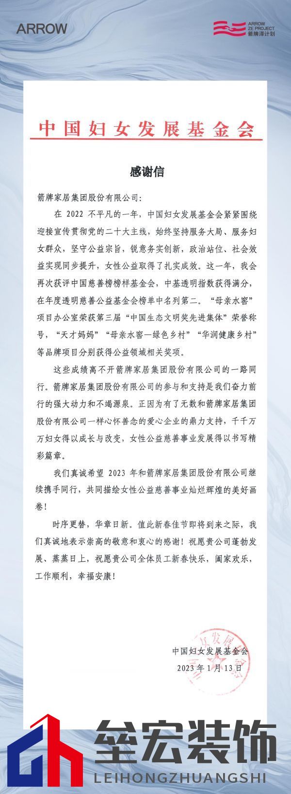 | 踐行社會(huì)責(zé)任,打造「箭牌澤計(jì)劃」回饋社會(huì) 據(jù)世界氣象組織在2022年底發(fā)布的首份《全球水資源狀況報(bào)告》,目前全球有36億人每年至少有一個(gè)月面臨供水不足,預(yù)計(jì)到2050年這一數(shù)字還將增至50億以上。 當(dāng)影響國(guó)計(jì)民生、關(guān)乎人類(lèi)生存發(fā)展的水資源問(wèn)題愈加嚴(yán)峻,越來(lái)越多來(lái)自社會(huì)各界的群體、組織開(kāi)始投身其中,探尋解決之道,逐漸凝成了獨(dú)特的公益力量。而箭牌家居集團(tuán)打造的公益品牌-「箭牌澤計(jì)劃」正是以回饋社會(huì)為己任,努力踐行社會(huì)責(zé)任。  誕生自2022年的「箭牌澤計(jì)劃」延續(xù)了箭牌家居的基因,通過(guò)創(chuàng)新化的探索,挖掘出品牌公益道路的新模式:以衛(wèi)生和環(huán)保為抓手,凝聚各方細(xì)水長(zhǎng)流的公益力量,以產(chǎn)品、活動(dòng)、資金等多種形式將關(guān)愛(ài)輻射至多個(gè)群體,并配合品牌科技驅(qū)動(dòng)打造“可持續(xù)的生活解決方案”。這其中便涵蓋對(duì)“水”公益的落地行動(dòng)。 秉承著讓水資源短缺地區(qū)的孩子也可以實(shí)現(xiàn)熱水澡自由的信念,2022年8月,箭牌家居聯(lián)合廣東省婦女兒童基金會(huì),以現(xiàn)金捐贈(zèng)的形式助力內(nèi)蒙古正藍(lán)旗那日?qǐng)D蘇木烏日?qǐng)D嘎查“母親水窖——集中供水工程”援建項(xiàng)目,幫助偏遠(yuǎn)干旱地區(qū)婦女和群眾解決飲水困難的問(wèn)題,在整個(gè)過(guò)程中倡導(dǎo)全社會(huì)踐行節(jié)水行為、實(shí)現(xiàn)更為環(huán)保的生活方式,內(nèi)蒙古“母親水窖”項(xiàng)目成為中國(guó)缺水地區(qū)萬(wàn)千家庭生活的希望與幸福源泉。 在傳遞善意的道路上,點(diǎn)滴付出亦會(huì)被看見(jiàn)。近日,箭牌家居「箭牌澤計(jì)劃」對(duì)“母親水窖——集中供水工程”援建項(xiàng)目的公益行動(dòng)收到了中國(guó)婦女發(fā)展基金會(huì)的感恩回饋。一封誠(chéng)摯的感謝信,道盡中國(guó)婦女發(fā)展基金會(huì)與箭牌家居戮力同心、持續(xù)發(fā)力女性公益事業(yè)的初心。  用品牌力量發(fā)起公益號(hào)召,做有溫度有擔(dān)當(dāng)?shù)钠髽I(yè) 事實(shí)上,箭牌家居一直走在社會(huì)公益的道路上,踐行著企業(yè)應(yīng)有的社會(huì)責(zé)任。2021年-2022年期間,箭牌家居曾聯(lián)合香江社會(huì)救助基金會(huì),援建重點(diǎn)貧困地區(qū)學(xué)校,陸續(xù)為湖南、廣東內(nèi)十所在建小學(xué)捐贈(zèng)衛(wèi)生間瓷磚、坐便器、蹲便器、立柱盆、龍頭等潔具產(chǎn)品,幫助當(dāng)?shù)馗纳平逃h(huán)境,提升相關(guān)衛(wèi)生體驗(yàn)標(biāo)準(zhǔn)和兒童衛(wèi)生常識(shí);還攜手廣東省婦女兒童基金會(huì),聚焦對(duì)特殊母親及其家庭的關(guān)懷和扶持,為50個(gè)特殊家庭提供潔具產(chǎn)品,幫助特殊家庭解決健康生活的難題;此外,2022年年末,箭牌家居更是將公益的核心聚焦老年人群體,聯(lián)合天貓、中國(guó)老年學(xué)會(huì)和老年醫(yī)學(xué)學(xué)會(huì)共同發(fā)起“黃扶手計(jì)劃”,向社會(huì)送出5萬(wàn)個(gè)適老扶手,為老年人群體送去精神和生活的支柱。  于無(wú)聲處傳遞愛(ài)意,于細(xì)節(jié)處貼心守護(hù)。相信未來(lái),箭牌家居將持續(xù)公益之路,通過(guò)「箭牌澤計(jì)劃」讓善意觸達(dá)更廣泛的群體,用品牌的力量發(fā)起全社會(huì)的公益號(hào)召,做有溫度有擔(dān)當(dāng)?shù)钠髽I(yè)。