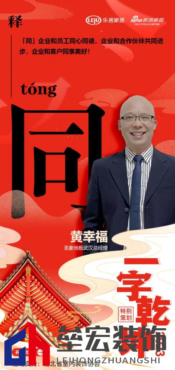 在新浪家居“2023一字乾坤”活動中,圣象地板武漢總經(jīng)理黃幸福:「同」企業(yè)和員工同心同德,企業(yè)和合作伙伴共同進(jìn)步,企業(yè)和客戶同享美好! “以漢字賦能湖北家居企業(yè),彰顯厚積薄發(fā)之力”,以單字抒寫了各家企業(yè)及媒體的新年愿景與發(fā)展信條,領(lǐng)略楚風(fēng)漢韻下湖北家居人砥礪向前,揚(yáng)帆未來的決心與動力,情暖兔歲,新啟華章。 |