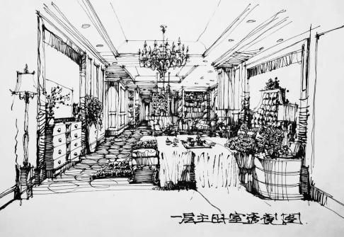 ??也正是因此,設(shè)計大宅,憑心而行、由心而發(fā),成為了秋老師獨有一份的風(fēng)格。來自他對鋼筆手繪呈現(xiàn)效果圖的堅持,秋添的設(shè)計作品無論是應(yīng)用功能上,還是整體協(xié)調(diào)性上,內(nèi)心的審美通過潑墨寫意的作畫方式快速表達,淋漓精致的同時,讓整個空間渾然一體。