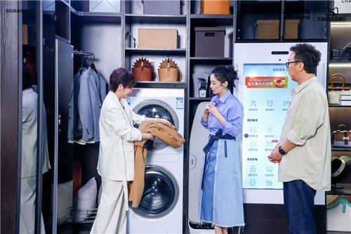 體驗(yàn)完新一代廚房,丁丁張?zhí)岢龈叨嗣媪想y以護(hù)理的問題,而方齡現(xiàn)場為她們推薦了卡薩帝洗衣機(jī)。三人走進(jìn)衣帽間,高葉將一件羊毛面料的衣物放進(jìn)洗衣機(jī)后,通過“養(yǎng)護(hù)空氣洗”的護(hù)理很快恢復(fù)了柔順質(zhì)感和最初色彩?!氨话怖搅?,這個功能不錯,還不用水洗!”對于經(jīng)常換裝、出席活動的高葉來說,高端面料衣物多、換衣勤,而卡薩帝洗衣機(jī)能讓她輕松擁有精致生活。 來到智慧客廳,三人坐在沙發(fā)上暢聊女性話題,體驗(yàn)居家時光的愜意和舒適。在冰吧中取出水果、飲品,一句話喚醒空調(diào),可以體驗(yàn)到適合每個人的專屬空氣,同時享受一場影院級音畫效果的電影。隨后在插花、泡茶的間隙,高葉還分享了她日常起居時的放松方式,泡澡時放音樂,配合香薰精油按摩……這些方式不但有效改善睡眠,更讓她舒適享受完美的一天。而卡薩帝熱水器、烘干機(jī)等卡薩帝家電都能幫助她們及時發(fā)現(xiàn)藏在生活里的美。