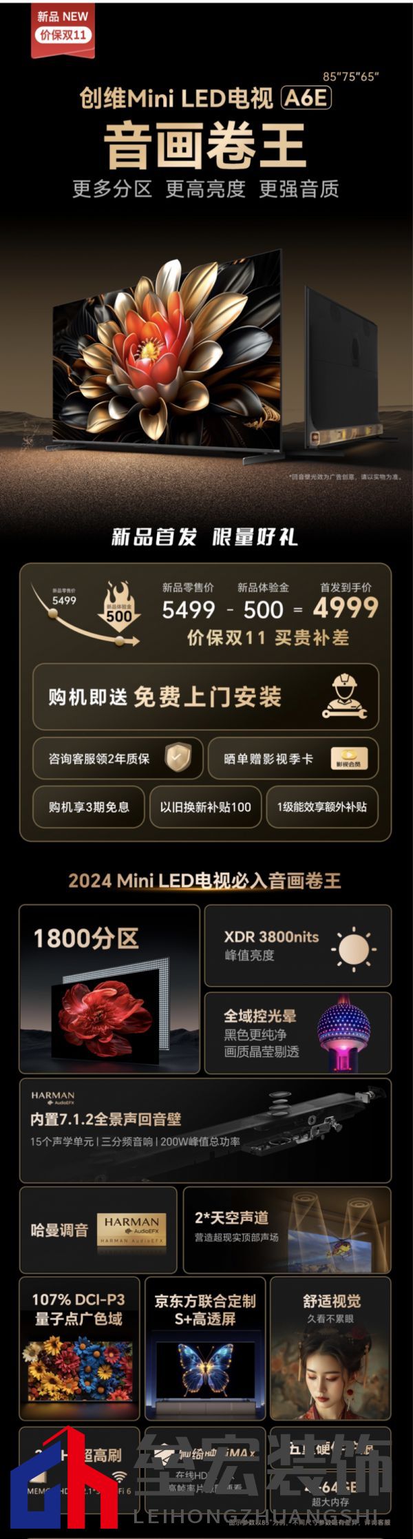 ??如今,創(chuàng)維 Mini LED電視A6E已經(jīng)蓄勢待發(fā),作為市場上獨(dú)領(lǐng)風(fēng)騷的“音畫雙絕”電視產(chǎn)品,創(chuàng)維A6E無疑將成為眾多家庭娛樂愛好者的首選。感興趣的朋友在9月21日開售當(dāng)日趕快下單,可享免費(fèi)安裝、延保服務(wù),曬單更有影視季卡相贈。同時,創(chuàng)維提供3期免息支付、以舊換新補(bǔ)貼,助力客戶輕松升級。特別驚喜是,支付尾款還有機(jī)會贏取限量PS5或《黑神話·悟空》游戲。詳情請登錄京東、天貓各大電商平臺,搜索產(chǎn)品型號查看開售專屬權(quán)益。 |