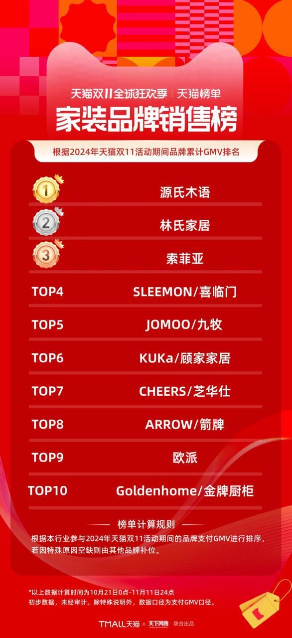 | 在國家補貼政策的積極推動下,家電家居行業(yè)迎來了顯著的增長浪潮。今年雙十一,源氏木語也憑借其卓越表現(xiàn),在這一波消費熱潮中脫穎而出,取得了矚目的成績。 全面開花 拿下家裝Top1 在天貓平臺,源氏木語實現(xiàn)了GMV同比增長64.37%的優(yōu)異成績,穩(wěn)居天貓家裝行業(yè)品牌銷售榜TOP1和住宅家具品牌銷售榜TOP1;京東平臺同樣見證了源氏木語的出色表現(xiàn),作為實木家具全周期TOP1,開門紅當天GMV同比增長3560%,全周期GMV同比增長超60%;在抖音平臺,源氏木語GMV也同比增長了74%,且雙十一期間不僅作為純實木家具品牌榜TOP1,在實木床/實木沙發(fā)/兒童床 等類目也均為品牌榜TOP1;在拼多多平臺,源氏木語GMV同比增長125.66%,位列住宅家具榜TOP1。當然也得益于源氏木語優(yōu)秀的產(chǎn)品品質(zhì)以及其精準的市場定位, 不僅在各大電商平臺大放異彩,線下門店也同樣收獲了不俗的業(yè)績。雙十一期間,源氏木語線下門店GMV環(huán)比增長200.8%,同比增長38.1%,也充分展示了源氏木語線上線下融合發(fā)展的強大優(yōu)勢。