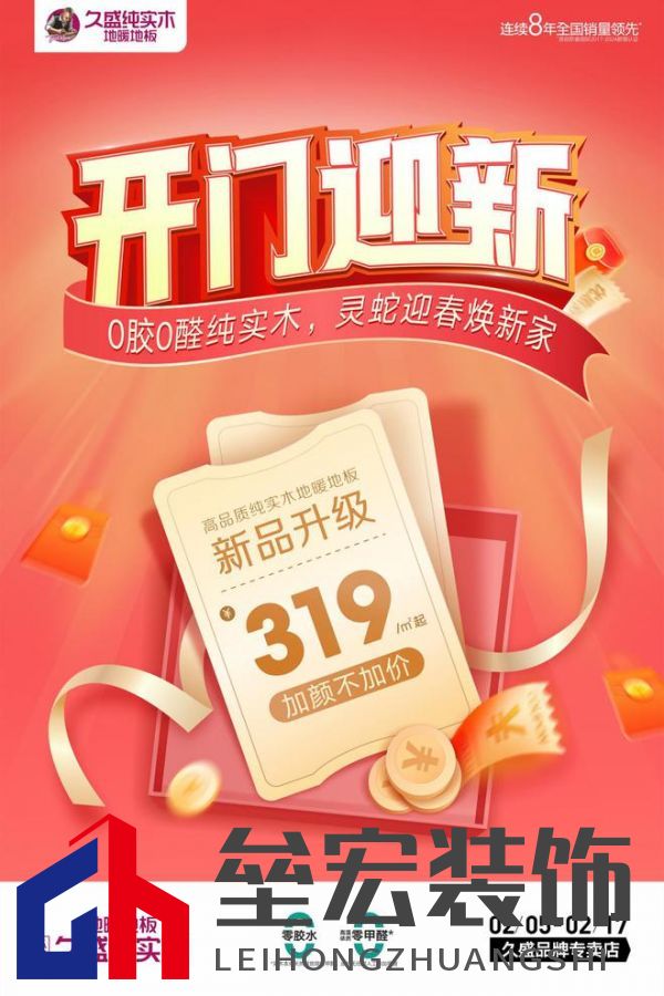 還有更多驚喜活動(dòng) 超值新春好禮 進(jìn)店享不停! 蛇舞新春,家居煥新 久盛純實(shí)木地暖地板開(kāi)門(mén)紅 與您一起開(kāi)啟璀璨新一年! 快來(lái)參與活動(dòng) 新春多重好禮等您來(lái)