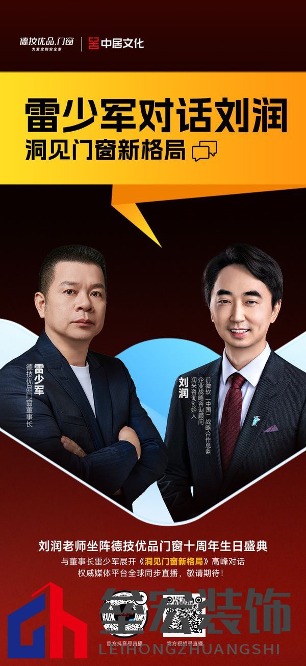??2.高峰對話《洞見門窗新格局》:行業(yè)領(lǐng)袖的思想碰撞 ??德技優(yōu)品特邀潤米咨詢創(chuàng)始人、企業(yè)戰(zhàn)略咨詢顧問、前微軟(中國)戰(zhàn)略合作總監(jiān) 劉潤坐陣十周年慶典現(xiàn)場,與雷少軍董事長展開深度對話!圍繞當(dāng)前的商業(yè)環(huán)境、消費(fèi)趨勢、品牌出海戰(zhàn)略、AI數(shù)字化轉(zhuǎn)型等議題內(nèi)容,探討行業(yè)大趨勢風(fēng)向。