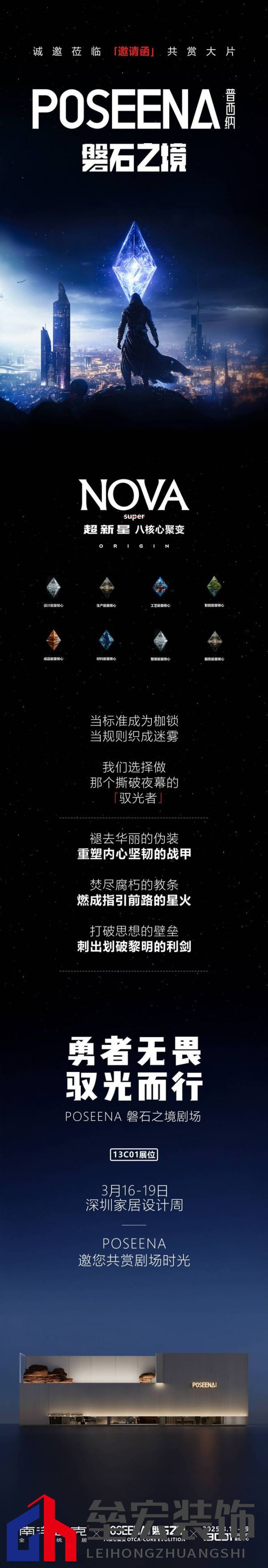 ??歷經(jīng)智慧沉淀、創(chuàng)新突破與多維探索,POSEENA 并未止步,而是進一步推出了“超新星 | NOVA 計劃”。這并非對未來的空想,而是一場“正在發(fā)生的實景推演,為家居行業(yè)帶來全新思考與變革。 ??2025深圳設(shè)計周·POSEENA「磐石之境」展廳將完美展示此計劃的魅力與精髓。該計劃以全案系統(tǒng)家居為核心,整合設(shè)計、生成、工藝、智能、家具、材料、整裝、服務(wù)“八大極致系統(tǒng)”代表“八大能量水晶”,實現(xiàn)全鏈能量的超維協(xié)同。