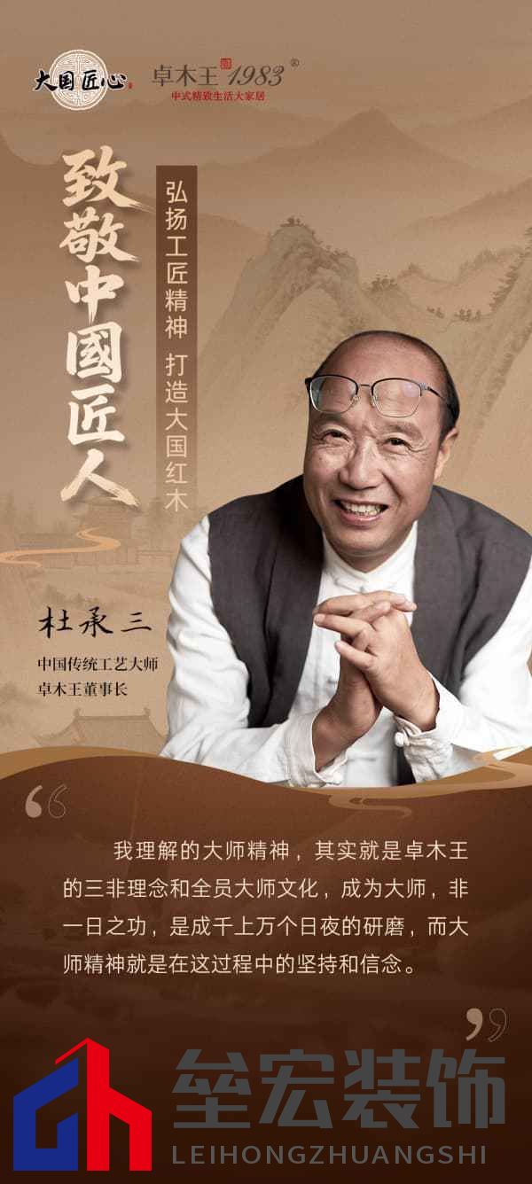 | 五一國際勞動節(jié),不僅是對勞動者的贊美,更是對匠心精神最深情的禮贊。在這個屬于勞動者的節(jié)日里,讓我們走進卓木王,感受傳統(tǒng)木藝與現(xiàn)代匠心碰撞出的璀璨光芒。 匠心傳承:大師精神鐫刻悠長時光 卓木王董事長杜承三大師,十七歲執(zhí)刀木作,五十載深耕東陽木雕,將“非真材實料不足以取信,非精湛工藝不足以立名,非大師之作不足以傳世”的“三非理念”刻入企業(yè)基因。